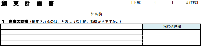 以下のPDFが事業計画書(創業計画書)の実際の様式フォーマットです。