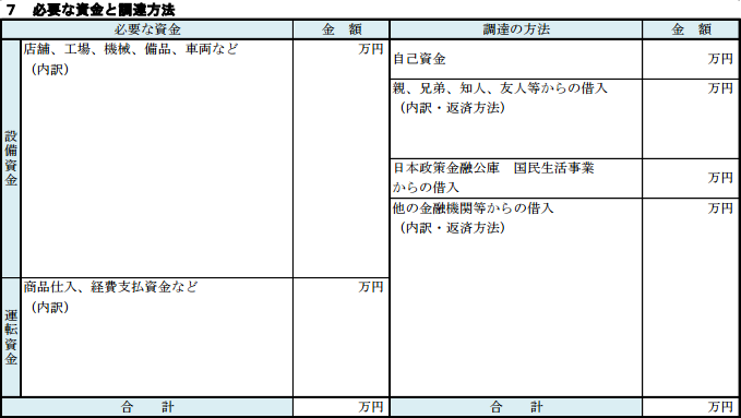 7.必要な資金と調達方法