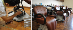 落ち着いた配色にレッドのアクセントをいれアメリカンバーバーを髣髴させるデザインを演出しました。