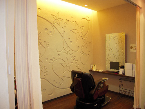 また、VIPルームの壁に彫り込みのデザインを施すことによってお客様にインパクトを与えることに成功しました。