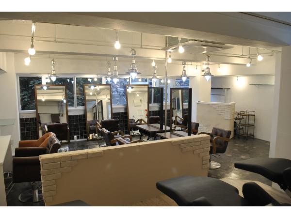 弊社新商品の両面自立ミラーでセット面を多く設けるように配置し、多くのお客様を収容出来る様にプランニング致しました。こだわりはブリックタイルとジョリパット仕上げです。