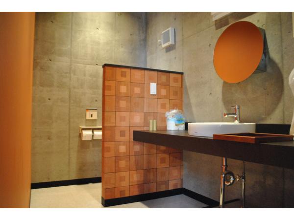既存で使用していたウッドデッキ材を再利用し、壁面に貼る事によりアンティークな空間の演出をしております。