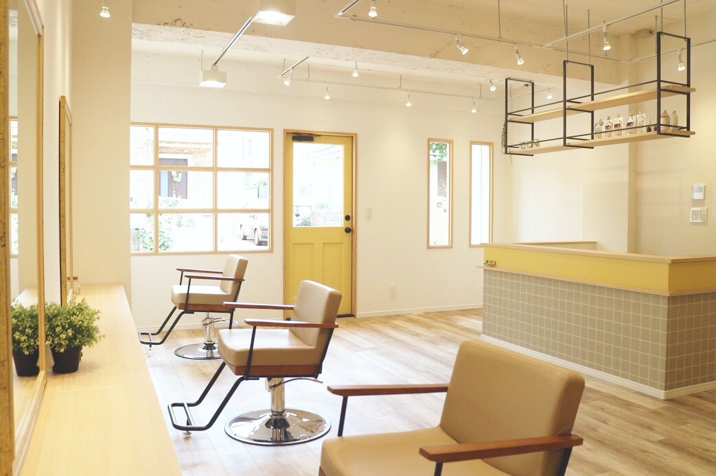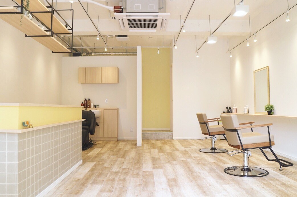 北習志野駅より徒歩ですぐの場所にオープンした美容室の『Be HoneyIII』様。店名のHoneyに合わせてイエローカラーを用いたかわいらしく明るい店内にデザインさせて頂きました。
